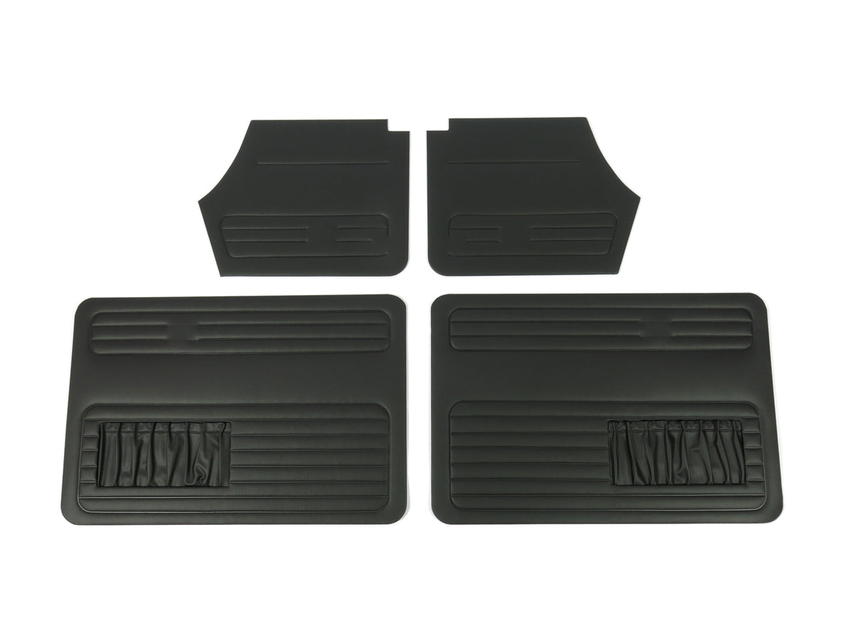Volkswagen Beetle Doorpanel Set Convertible - Black - 4 Pcs. Doorpanel set convertible - black - 4 pcs Inside door panels get always a hard time. We now added into our range the full set of door panels for Volkswagen Beetle convertibles built between August 1966 and July 1972, for later models 1303 convertible we do sell the front and the rear door panels separately, but 66-72 is one set of four pieces for your convenience. for Beetle, Karmann Ghia 14, Type 3 models.
