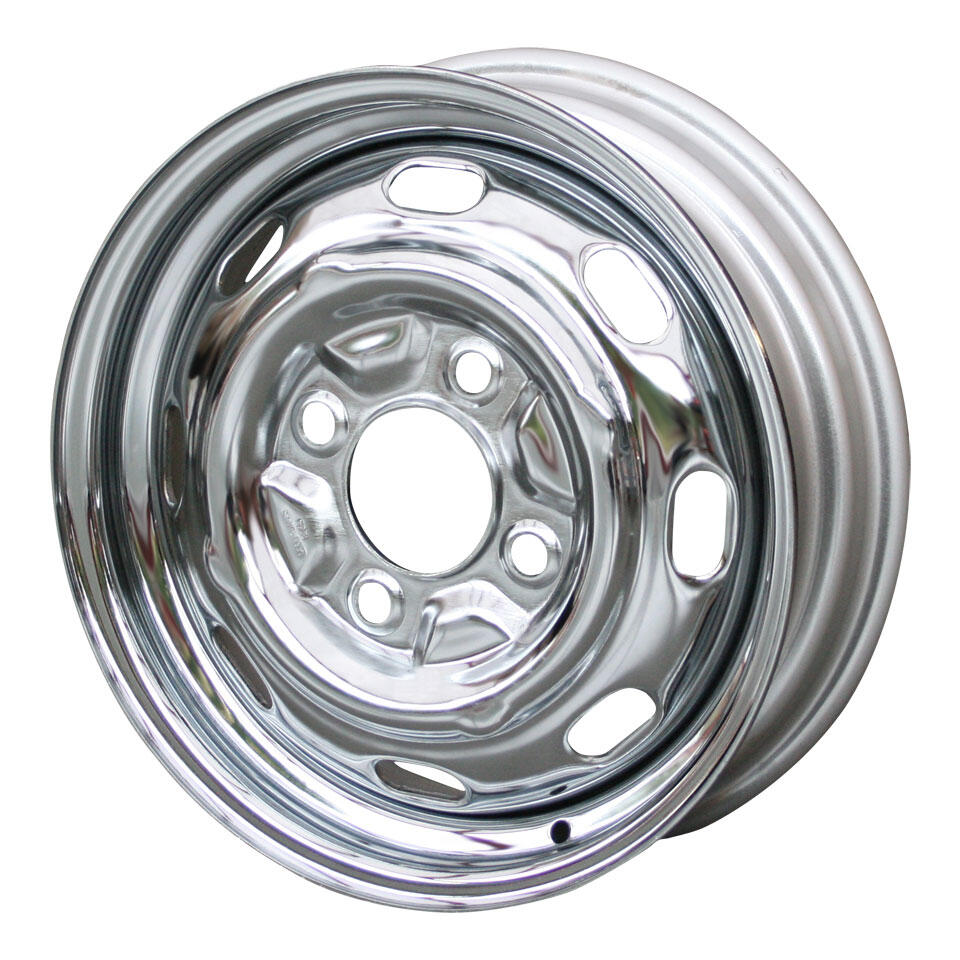 Wheel standard, chrome 4 lug (4x130) 4.5 x 15, ET +45 for Beetle, Karmann Ghia 14, Type 3, Type 4 models.