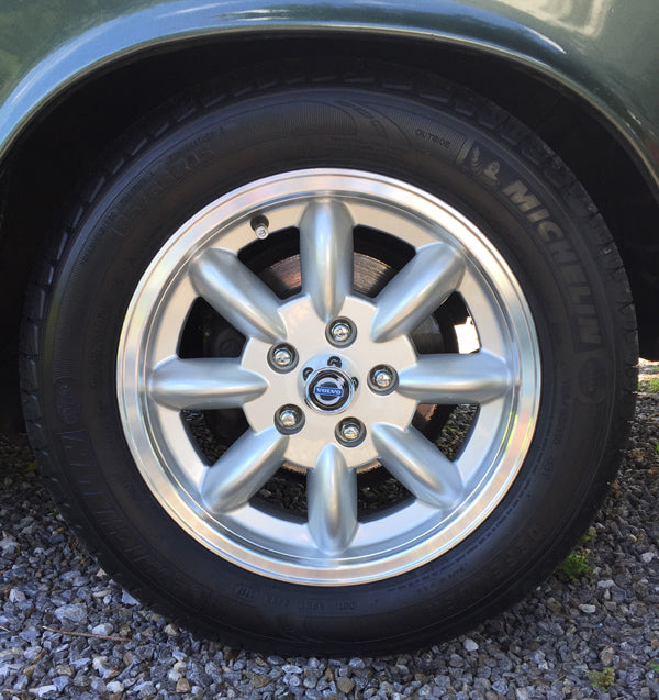 Silver polished 5.5x15 Minilite style wheel for Volvo 160, 240, 260, 740, 760, 940, and 960 models starting October 1970. Bolt Pattern: 5 x 108 ET 20. Weighs 6.2 kg. Made in Germany.