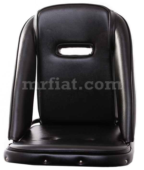 ONE new sport seat with side openings and backseat opening for Alfa Romeo Giulietta SSChassis 750/101models. This seat is handmade in Italy. It is made from galvanized duralastic belts and jute fabric. The frame is made out of foam padded iron tubesdensity: 50/40/30 . The seat is covered with leatherette. Please contact us directly if you want to customize the seat before ordering. Dimensions: 63 cm high, 54 cm deep, 51 cm. wide. Weight: 6.2 kg. Only sold in sets of two.