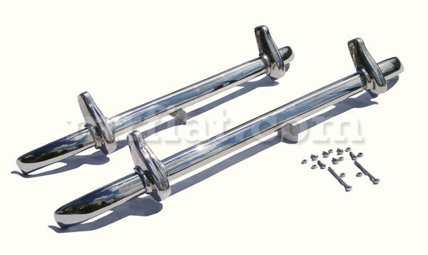 This a new bumper kit for the Aston Martin DB2/4 MK1 models from 1953-57. The kit consists of 1 front blade bumper, 1 rear blade bumper, 4 over riders and fixings. Stainless steel was chosen for the following reasons:1never corrodes rust proofgrade 304/1,4301/72in case of dent or damage unlike chrome plated steel it does not require stripping and rechroming3stainless steel allows for easy repair and repolishing in the hand of a professional4it's a lot tougher than chrome plated steel bumpers. The bumpers are finished to a high mirror polish, just like chrome. The back of bumpers are acid etch primed and painted with ICI two pack paint in a cream tone.Delivery takes 2-3 weeks.