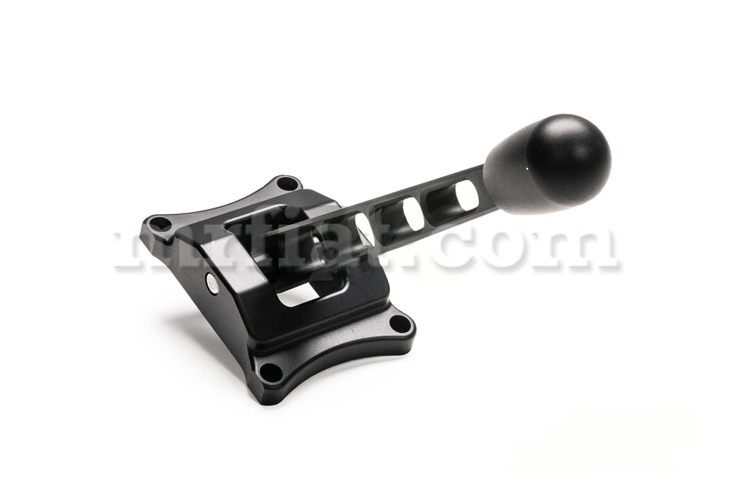 New short shifter for all BMW E30 with Getrag or ZF transmission models. Its task is to shorten the shifting travel considerably and to switch precisely. With the short shifter you get a feeling of increased integration with the car and thus control over the driving behavior. A long service life - the gear knob is screwed on and can be turned off. The shifter has a height of 30cm, measured from the foot. It was designed so that it can be installed in the original tunnel and under the original bellows. It's manufactured with CNC machines and is black anodized. The Drift-King shifter is made of aluminum and therefore impresses with its very low weight. A high quality bearing is used that sits on the lever. Quality product from Hamburg.
