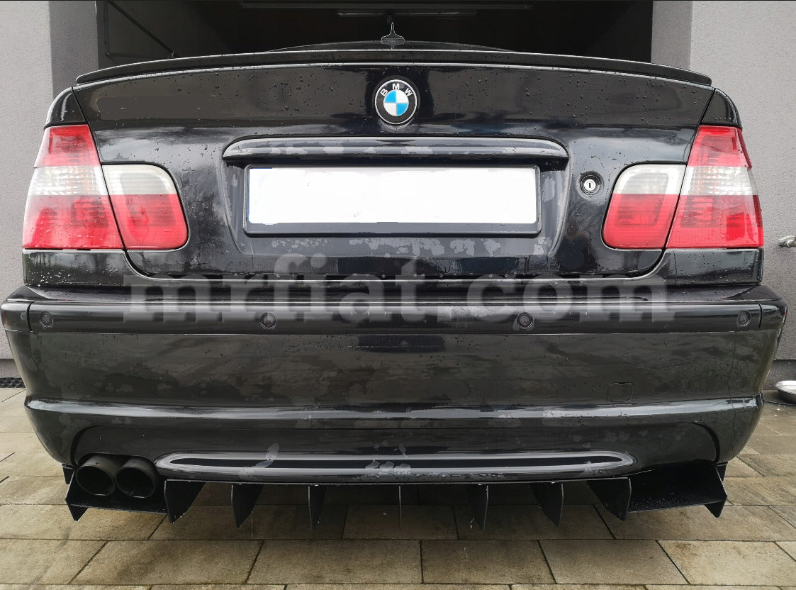 Adjustable rear diffuser for BMW E46 Coupe, Sedan and Touring with M3 rear bumper models. It is made of 3mm thick black powder coated aluminum. Gives your car a sporty look. The weight is 3.45kg. Quality product from Hamburg.