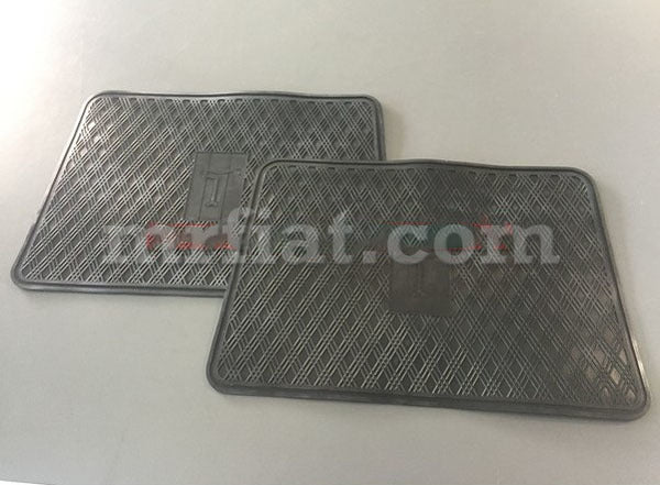 Black heel tap rubber mats set for De Tomaso Deauville models. There is a 2-3 week production time for this item. Made in Italy. Original Equipment Manufactured Part. Part number: 14808-000