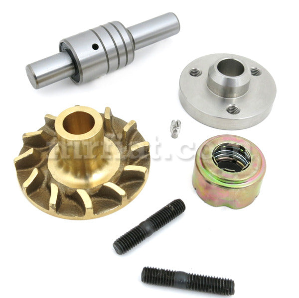Water pump repair kit for Ferrari 206 and 246 GT GTS models. The kit includes: bearing, impeller cavitation optimized wing geometry of the impeller, according to the latest state of technology, thus significantly improving durability. Made out of cast brass. Made in Germany , pulley flange, seal, slotted grub screw with full dog point, and stud bolt. Mounting information: when installing a new water pump, a repair kit for the water pump or a new seal, the water pump will first lose water. The seal ring must grind inup to 4 hours operationuntil it reaches its full tightness.