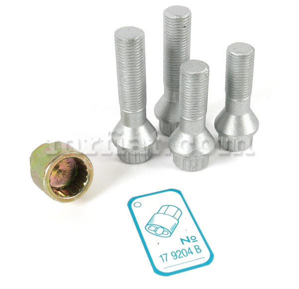 Wheel lock set for Ferrari 208 and 308 GT/4 GTB GTS models. It is the best anti-theft device. Made out of highly loadable steel with individual gear profile. It has an adapter for easy opening and closing.