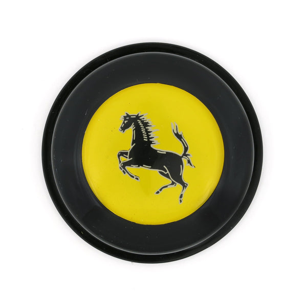 Ferrari horn button for Ferrari 250, 275, 330, and 365 steering wheels. The front diameter is 2.44 in62 mm.