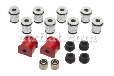 Complete rear axle repair set for Ferrari 308 QV models.It is made out of high quality materials. The set includes: 8 x rubber bonded metal bushings, 4 x torsion bar rubbers 208-308, 2 x torsion bar bushingsQV , and 2 x torsion bar rubber bonded bushings.