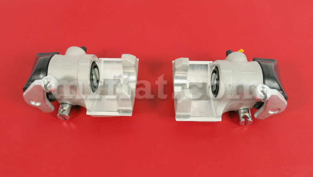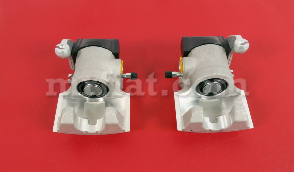 Rear brake caliper set with standard 34 mm pistons for Fiat 124 Coupe, Spider, and Sedan models from 1966 - 1985. Fiat part # 4181971 - 418197- 4182767- 4182768.
