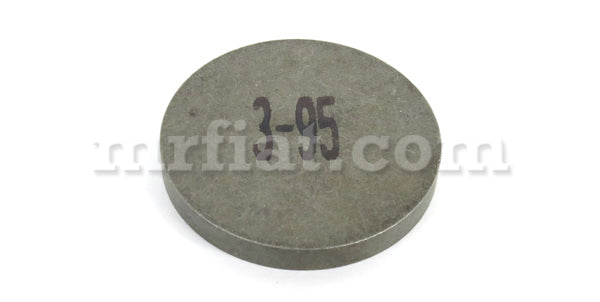 Valve tappet shim for Fiat 3.95 models. Fits Fiat 124 - Fiat 125 - Fiat 131 - Fiat 132, Fiat 128 - Fiat X1/9, Fiat 130 - Fiat Dino 2400. diameter 33 mm - thickness 3.95 mm. Fiat part # 4152458
