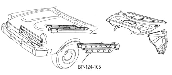 OEM short right rocker panel casing brace for Fiat 124 Spider models. Made with original OEM tooling in Italy.