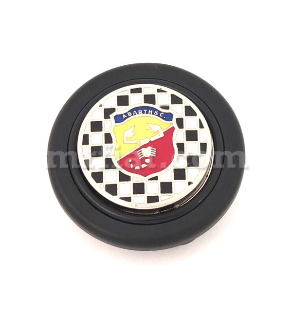 Checkered Abarth horn button with a 2 inch diameter for all aftermarket wheels.