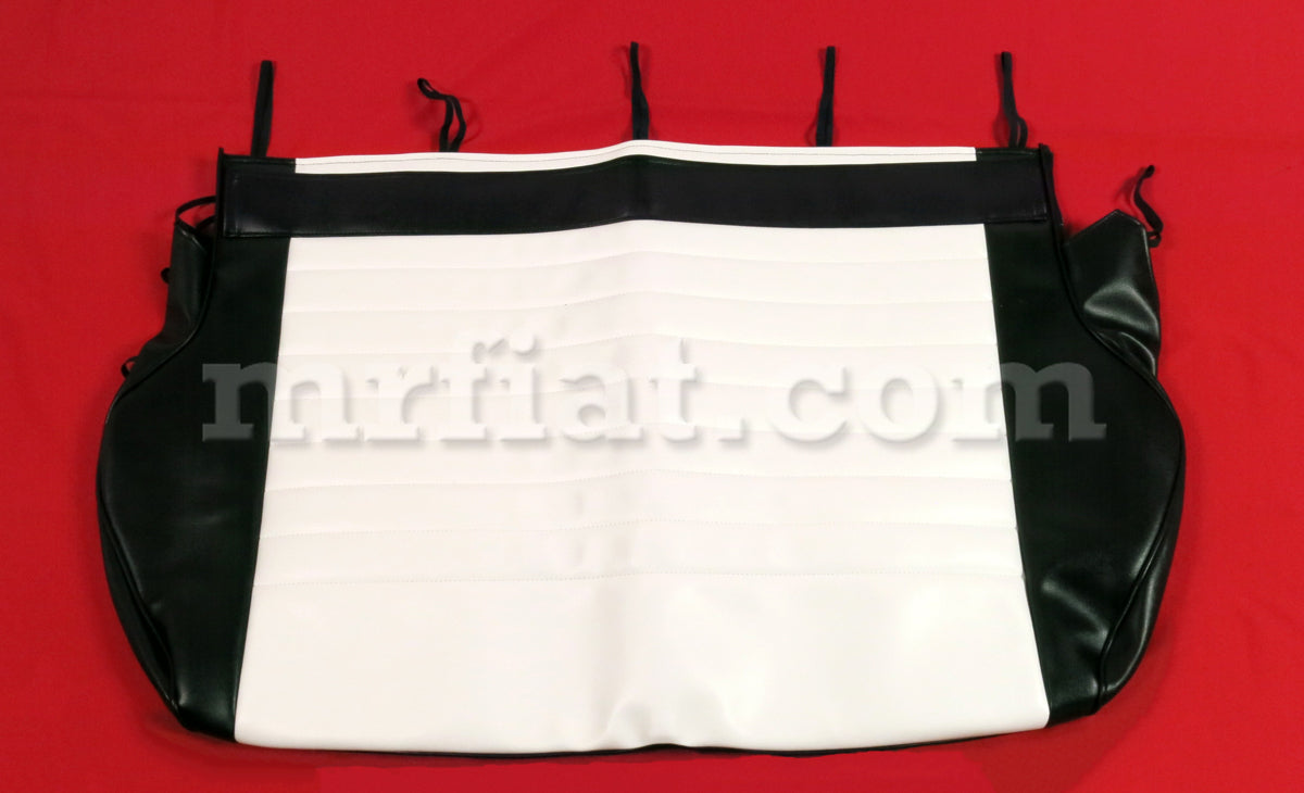 Set of white anatomical seat covers for all Fiat 500 models with the Fiat logo embroidered on the front seat covers.. These seat covers have special cushioning that align to the anatomy of your body for extra comfort and hence the name anataomical seat covers. These seat covers are also availble in red, blue, and yellow as well as with Abarth logo or Giannini logos embroidery. Call 678-637-5103 for questions.
