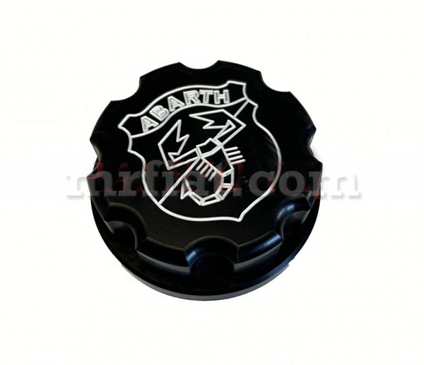 Abarth black aluminum fuel tank cap for all Fiat 500 models.