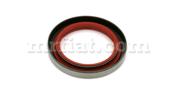 Front engine oil seal for Fiat Dino early 2000 Coupe models up to Chassis # 2088 and early Spider models up to Chassis # 715. Half rubber, and half metal sheet with spin to the right. Inner diameter: 40 mm, outer diameter: 56 mm.