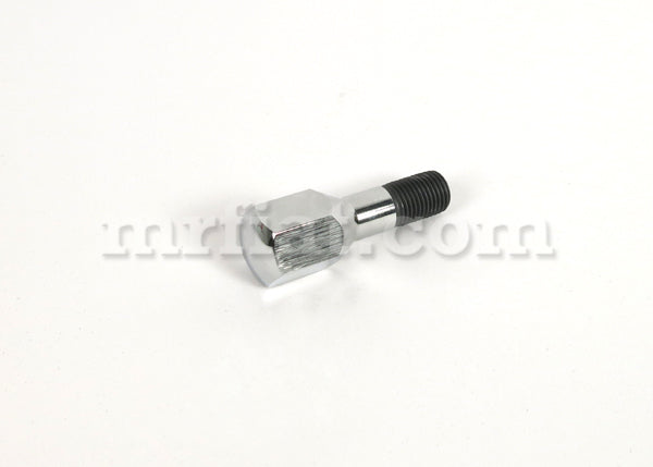 Rear high gloss finished chrome wheel bolt for Fiat Dino 2400 Coupe models. It is a high quality product made out of high grade tool steel: it is roll-threaded, cold worked with ground and polished surfaces. The plating is made out of copper, tin and high-gloss hard chrome. Shaft length including thread: 34 mm.