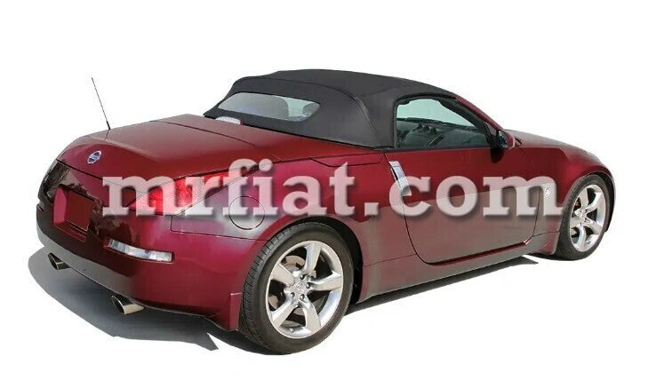 Sailcloth black stayfast vinyl soft top with heated glass for Nissan 350Z Cabrio 2003-09 models. Topping color is black with black interior backing.