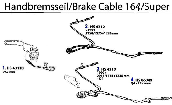 Front handbrake cable for Alfa Romeo 164 models. #1 in corresponding diagram.