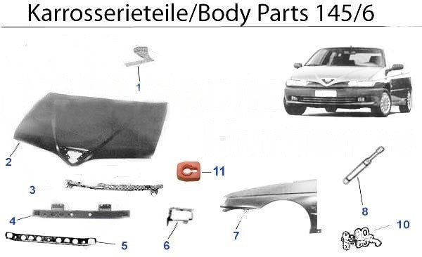 Gas spring tailgate for Alfa Romeo 145/6 models. #8 in corresponding diagram.