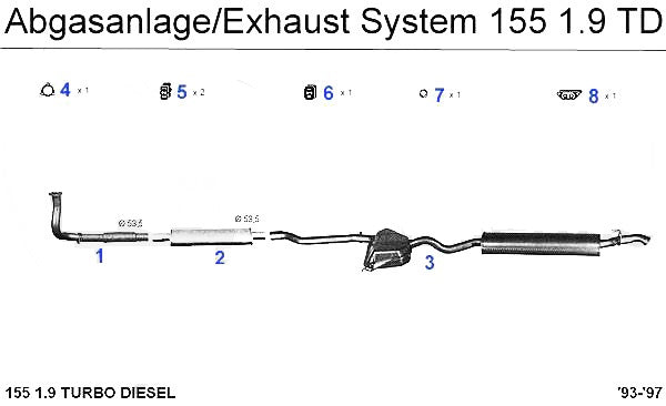 Gasket front silencer 155 with engine Td for Alfa Romeo 155 TD models. #4 in corresponding diagram.