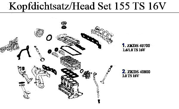 Aluminum valve cover head gasket set for Alfa Romeo 155 1.6cc/2.0cc IE TS 16v models. #1 in corresponding diagram.