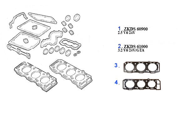 Head gasket set for Alfa Romeo 156 2.5cc 24v V6 models. #1 in corresponding diagram.
