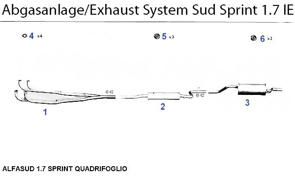 Downpipe for Alfa Romeo SUD SPRINT 1.7cc QV 33 models. #1 in corresponding diagram.