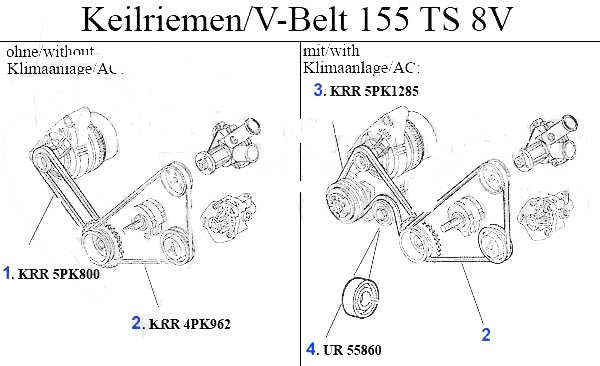 Idler pulley v ribbed belt for Alfa Romeo 155 models. #4 in corresponding diagram.