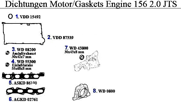 Intake manifold gasket for Alfa Romeo 156 2.0cc JTS models. #5 in corresponding diagram.