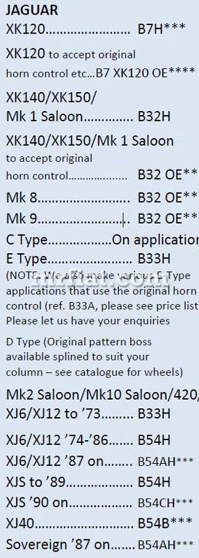 Moto-Lita MK3 wood steering wheel with chrome Jaguar badged billet horn hub adapter. Price includes required hub adapter from the list in picture #3. Please see hub chartpicture #3for appropriate model types.
