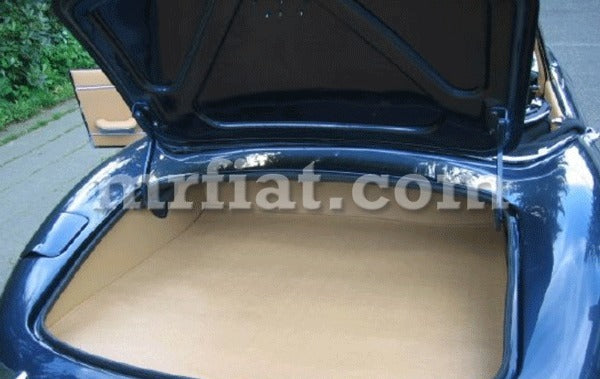 Complete trunk re-trim kit for Jaguar XKE E-Type S1 S2 OTS. It is among the best you can buy for originality and fit. Using weatherproofed unilit board 1/8 as backing material for the side and rear panels and heavy rubber backing on the center mat. All materials are precision cut, pressure glued, stapled, stitched and edge-bound to guarantee a factory authentic fit. The leathercloth on center mat and side panels are a 100 match in color, grain and gloss. The trunk re-trim kit is available in the original biscuit, but can also be matched to your interior in black, dark blue not navy , gray, magnolia, biscuit, beige, burgundy and red.