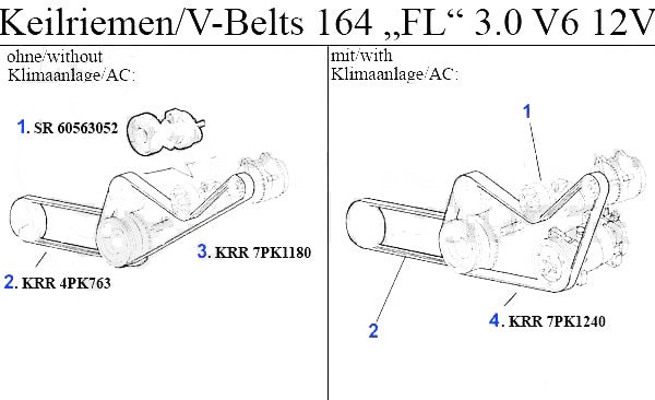 Serpentine belt for the power steering pump for Alfa Romeo 164 2.0cc Turbo models. #2 in corresponding diagram.