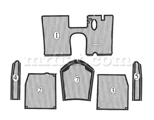 Complete rubber mat settrunk mat not includedfor Lancia Appia Converttible and Lusso Vignale RHD right hand drive models from 1958-62. There is a 2-3 weeks production time for this item. Made in Italy . Original Equipment Manufactured Part.