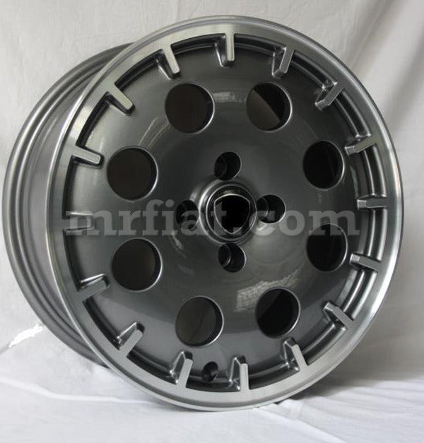 This ONE new anthracite 7 x 15 wheel with polished lip with for Lancia Delta HF Integrale 16V models. This wheel has a 4 x 98 mm bolt pattern and a 27 offset. Wheels are only sold in a set of 2, you must purchase 2 or 4. Made in Italy.