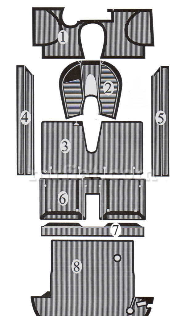 Rubber mat #3 for Lancia Fulvia Coupe 2nd, 3rd Series models from 1969 - 76 and HF. There is a 2-3 week production time for this item. Made in Italy. Original Equipment Manufactured Part. Part number: 13270-003