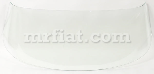 OEM windshield for Maserati 3500 GTI Touring models. production stress-relieved windshield from Scandinavia with sanded edges, original thickness, and old-style edge markings. Dimensions: center height 50.7 cm and 157.4 cm long.