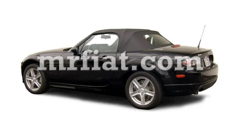 Sailcloth black vinyl soft top with heated glass for Mazda Miata 2006-15 models. Topping color is black with black polyester dobby interior backing.