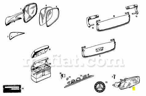 Mirror glass clear for Mercedes 180 190 Ponton models. Made in Italy.