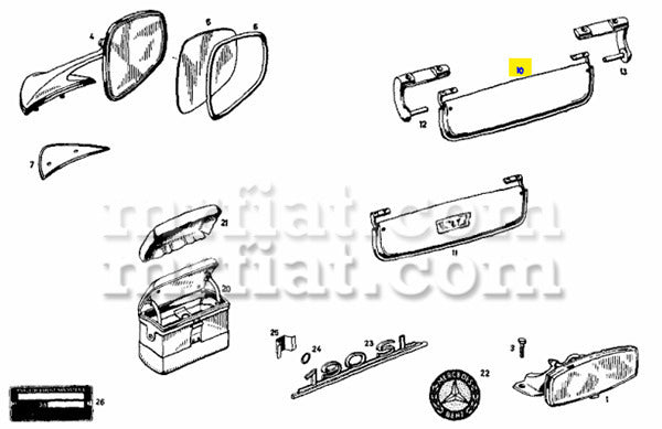Sunvisor frame type 2 for Mercedes 190 SL models. Made in Italy.