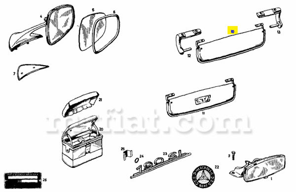 Sunvisor mirror type 2 for Mercedes 190 SL models. Made in Italy.