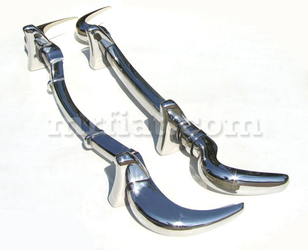 Bumper kit for the Mercedes W121 Roadster 190 SL models from 1955-1963. The kit consists of: one front bumper in 3 parts, one rear bumper in 3 parts, 4 over riders, 2 joining strips, 2 embellishers, and over rider rubber inserts. We offer both style of rear over riders, either with license plate cut out or without the cut out. Please specify when ordering. The bumpers are stainless steel and hand finished. Stainless steel was chosen for the following reasons: 1never corrodes rust proofgrade304/ 1.4301 , lifetime anitcorrosion warranty 2in case of dent or damage unlike chrome plated steel it does not require stripping and rechroming 3stainless steel allows for easy repair and repolishing in the hand of a professional 4it's a lot tougher than chrome plated grills. The back of bumpers are acid etch primed and painted with ICI two pack paint in a cream tone. Delivery takes 2-3 weeks.