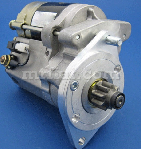 High torque starter motor for Mini replacing inertia type models up to 1985. It weighs 4 kg and is based on a 1.0kW Denso starter motor which has been modified to suit this particular application. It has 9 teeth/29mm diameter pinion, 3.589mmspigot diameter, 4.5114.3mmbolt hole center distance, and is supplied with a terminal fitting kit. This starter motor is 100brand new and is built to the highest standards to withstand the rigors of all forms of motoring including Road, Race and Rallying. Each unit is a direct replacement for the original starter motor and weighs less than the original with 2 - 3 time the power output. Every Denso starter motor mounts in a unique circular stepped register which enables it to be spun 360 degrees on its own axis with ease giving the unit an infinite number of mounting positions. Please note, if you require a multi-drilled end plate to enable the motor to be mounted in different locations please let us know at the time of ordering and we can supply these at no additional cost.
