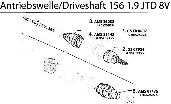 Const.velocity joi 85kw for Alfa Romeo 156 1.9cc JTD 8v models. #2 in corresponding diagram.