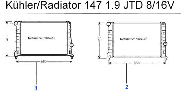 System valeo radiator for Alfa Romeo 147 JTD 8v/16v models. #1 in corresponding diagram.