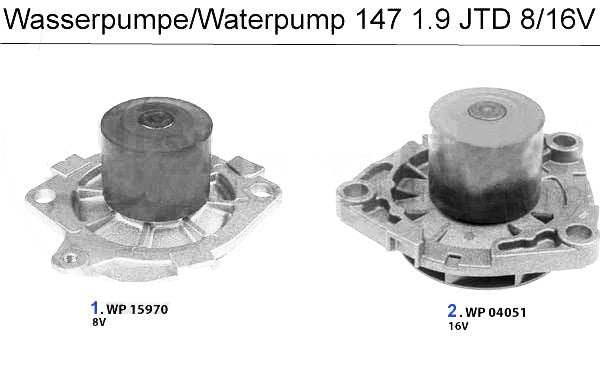 Water pump for Alfa Romeo 147 1.9cc/2.4cc 16V/20V models. #2 in corresponding diagram.