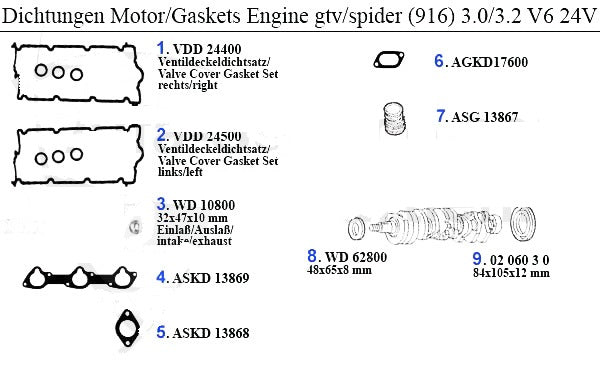 Sealing gasket for Alfa Romeo GTV/Spider (916) models. #5 in corresponding diagram.