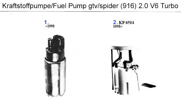Fuel pump for Alfa Romeo GTV/Spider (916) V6 24v models. #1 in corresponding diagram.