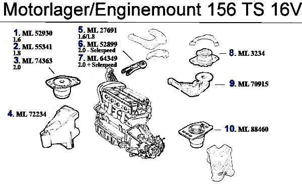 Engine mount rear right for Alfa Romeo 156 models. #5 in corresponding diagram.