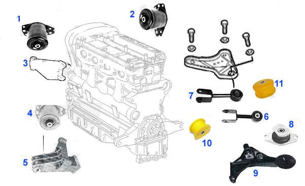 Engine mount for Alfa Romeo GTV/Spider (916) models. #3 in corresponding diagram.