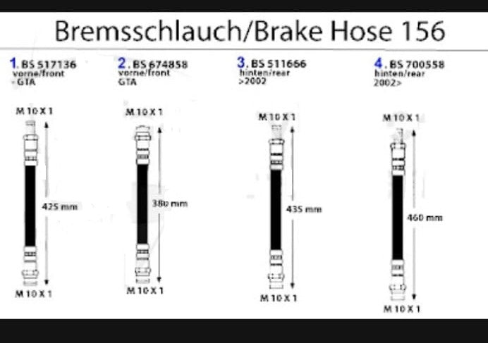 Brake hose for Alfa Romeo 156 models. #2 in corresponding diagram.